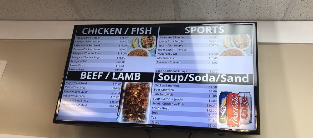 Highlights include the popular "Sports for 2," which showcases a delightful combination of lamb, chicken, rice, and spaghetti, all bursting with flavor. Many guests rave about the freshness of the ingredients, with dishes often reflecting the vibrancy of Somali culinary traditions.